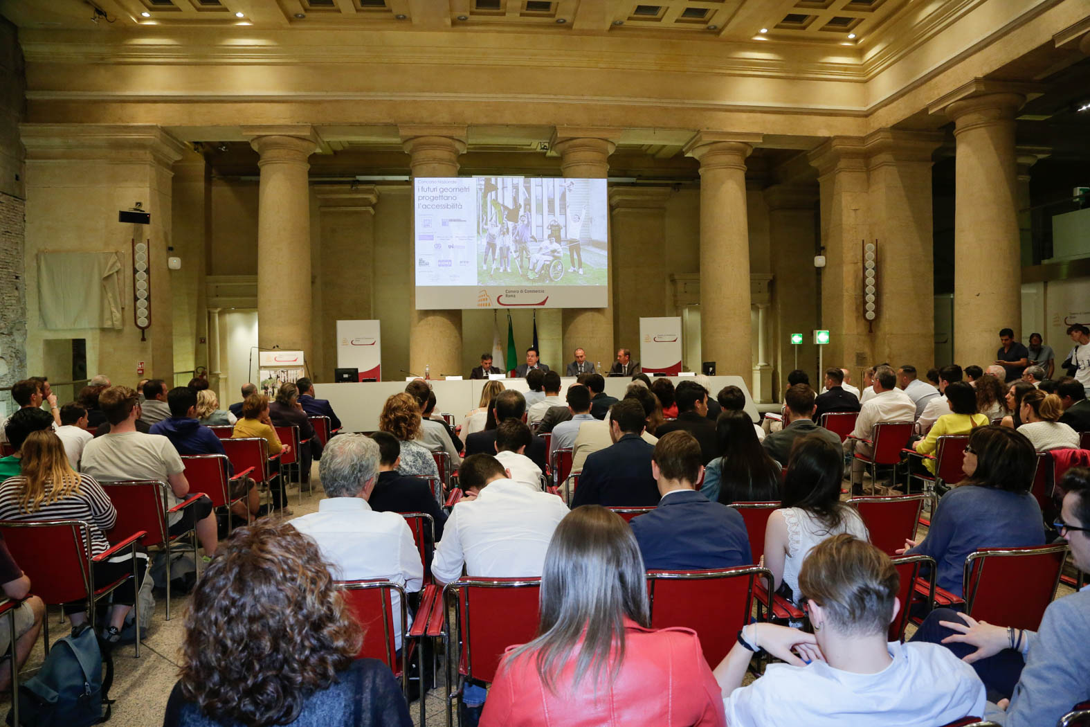 Oltre 170 studenti, provenienti da tutta Italia, hanno affollato la Sala del Tempio di Adriano della Camera di Commercio di Roma che ha ospitato il 5 giugno la cerimonia conclusiva della 6^edizione del concorso “I futuri geometri progettano l’accessibilità”, promosso da FIABA Onlus, dal Consiglio Nazionale Geometri e Geometri Laureati (CNGeGL) e dalla Cassa Italiana Previdenza e Assistenza dei Geometri liberi professionisti (CIPAG), in collaborazione con GEOWEB S.p.A., KONE, BPER Banca, Vittorio Martini 1866, Ente Italiano di Normazione (UNI).