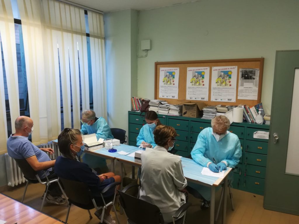 Tutti in fila per il test sierologico a scuola: personale ‘anziano’ ma sano. E all’Itet lo fanno in classe